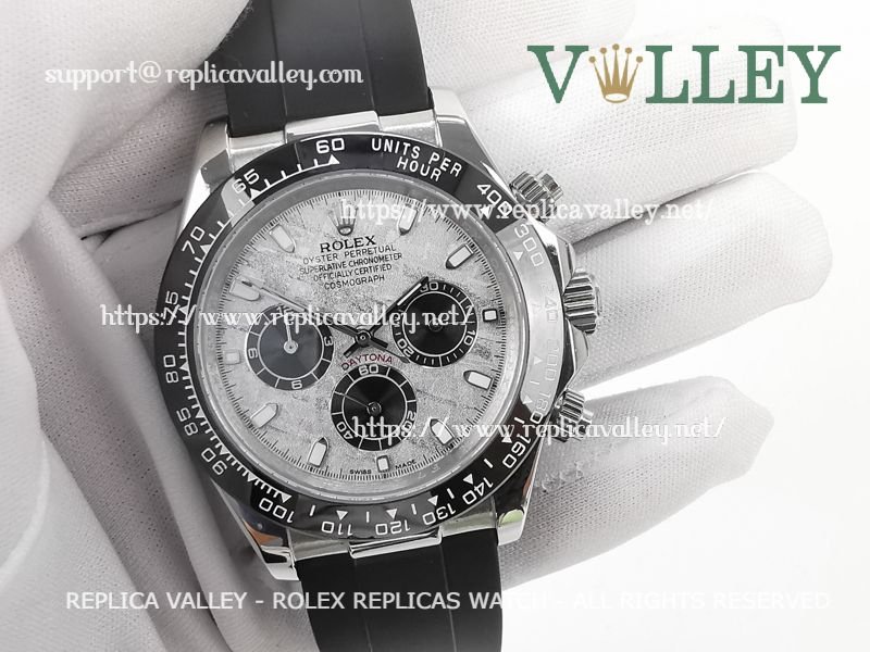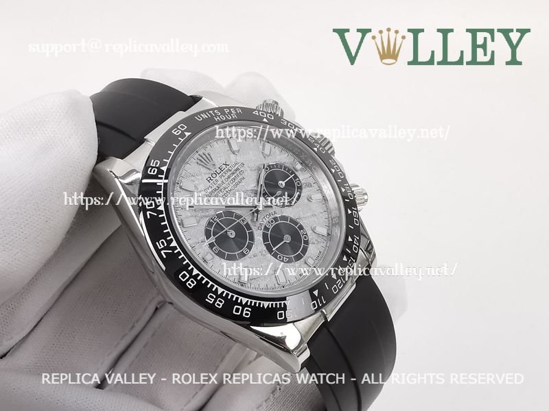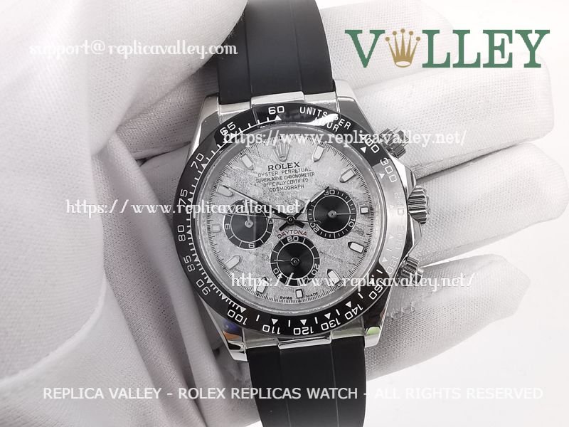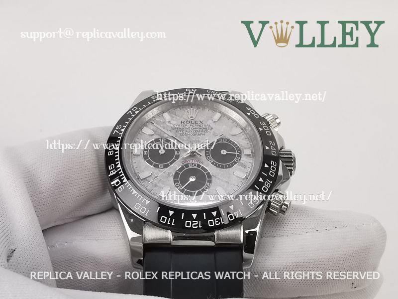 Model: SS Case, Ceramic Tachymeter Bezel, Silver Meteorite Dial with Stick markers, Black Subdials, Engraved ROLEXROLEX on rehaut
