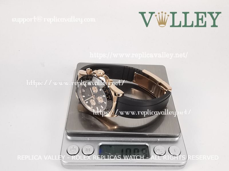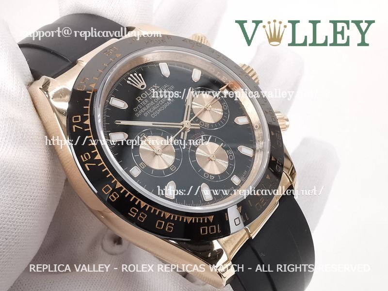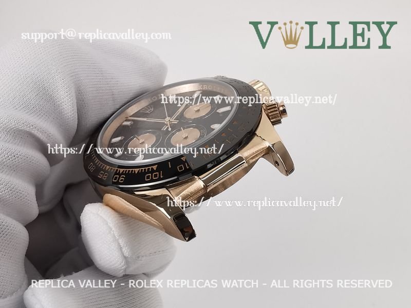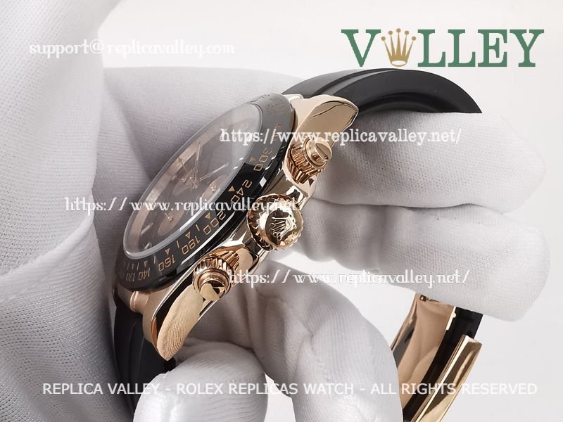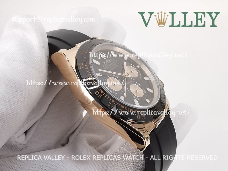 Model: Rose Gold Plated SS Case, Ceramic Tachymeter Bezel, Black Dial, Rose Gold Subdials, Luminous Hour Markers, Engraved ROLEXROLEX on rehaut