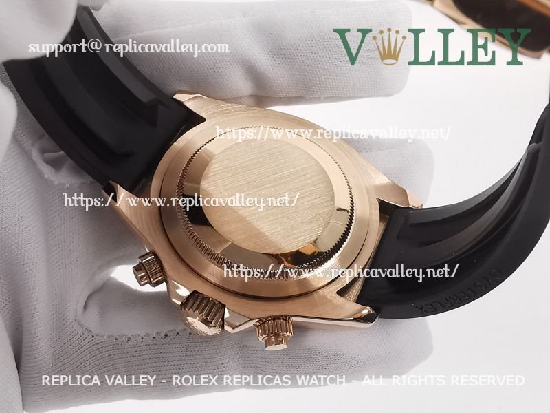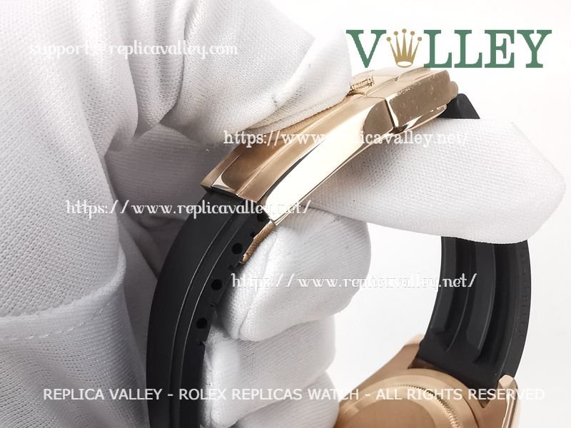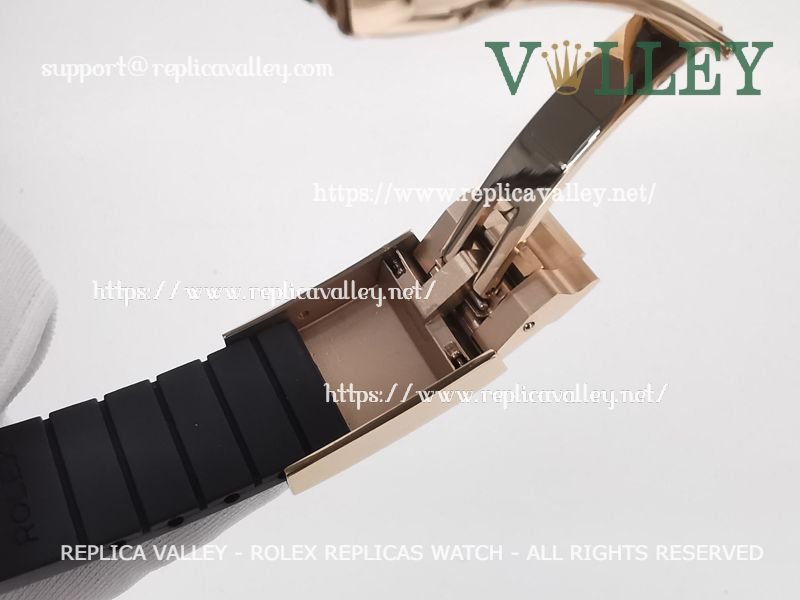Strap: Black rubber strap with Rose Gold Plated Rolesor Clasp