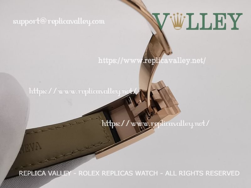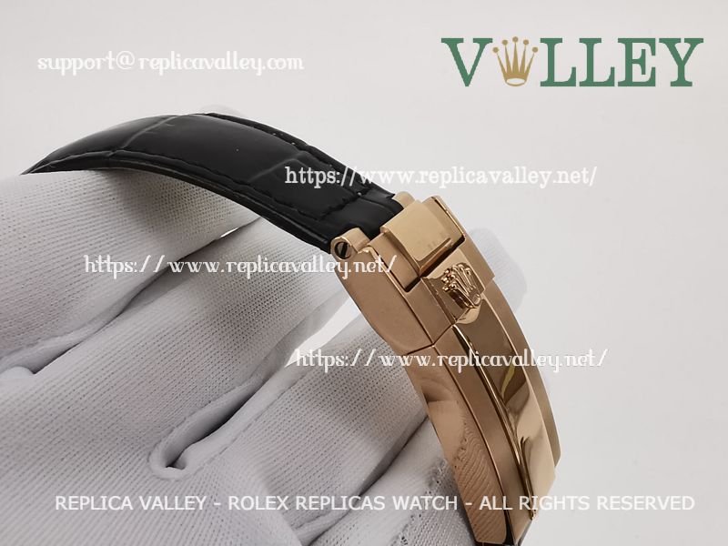 Strap: Black Leather strap with Rose Gold Plated Rolesor Clasp