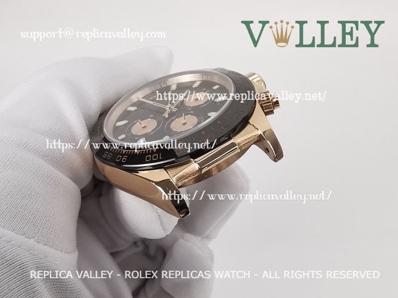 Model: Rose Gold Plated SS Case, Ceramic Tachymeter Bezel, Black Dial, Rose Gold Subdials, Luminous Hour Markers, Engraved ROLEXROLEX on rehaut