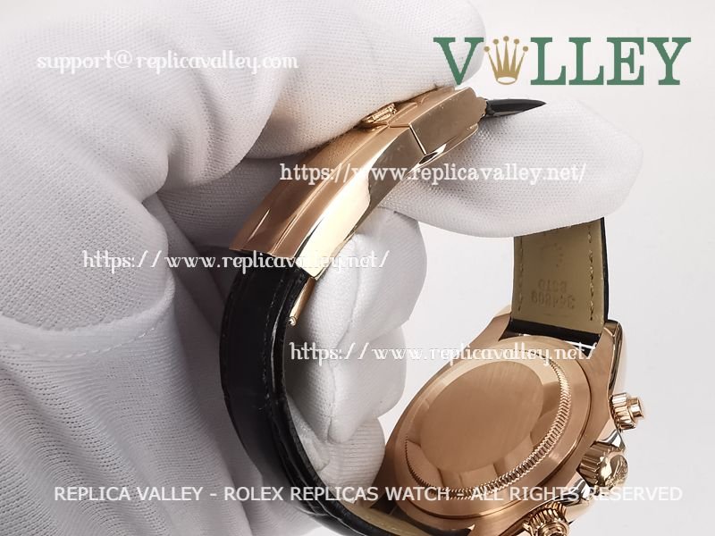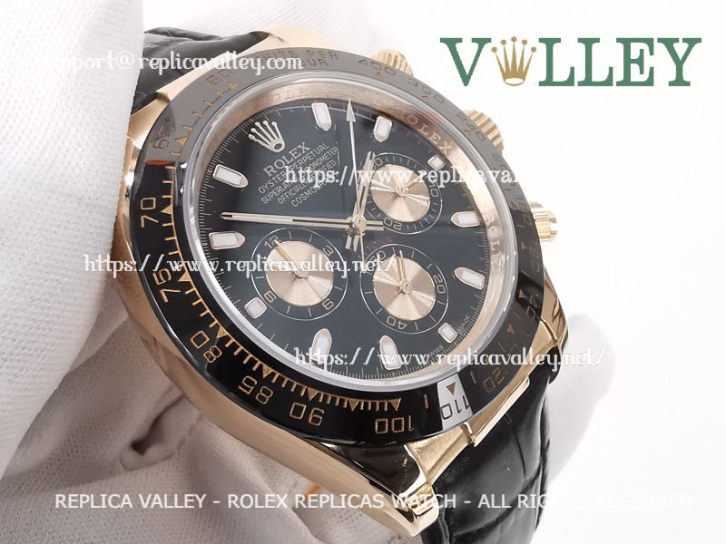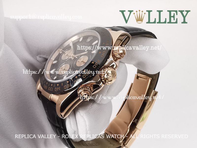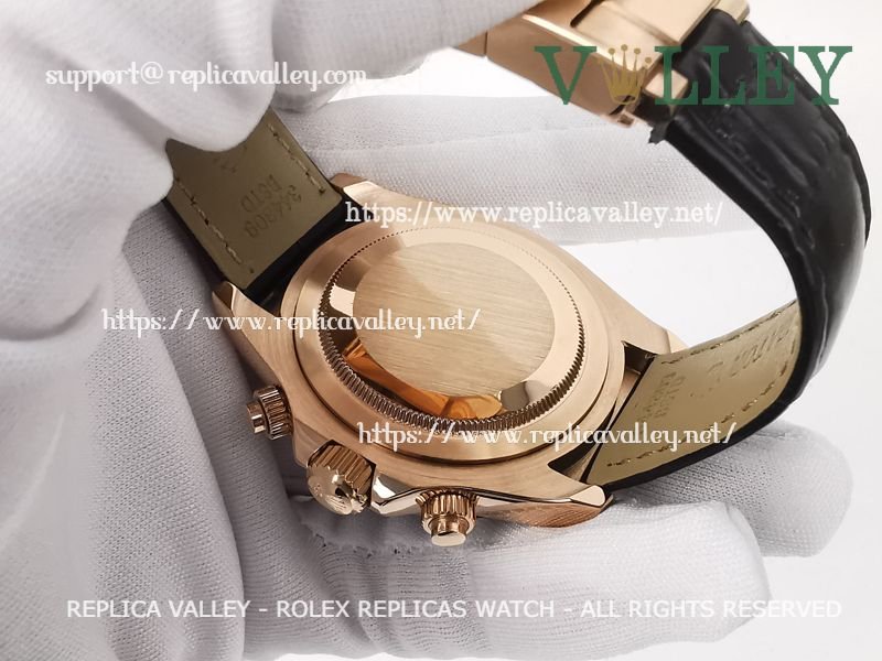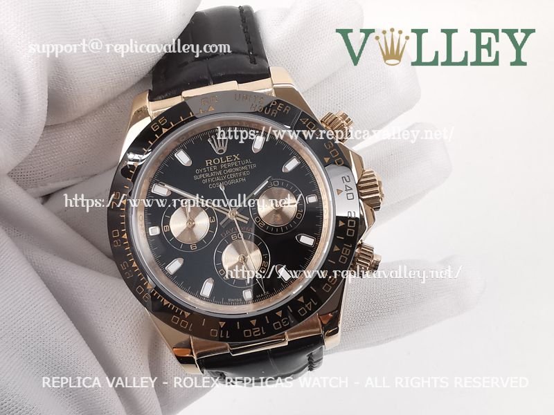 D651 Rolex Daytona 116515 Rose Gold Leather Black Dial