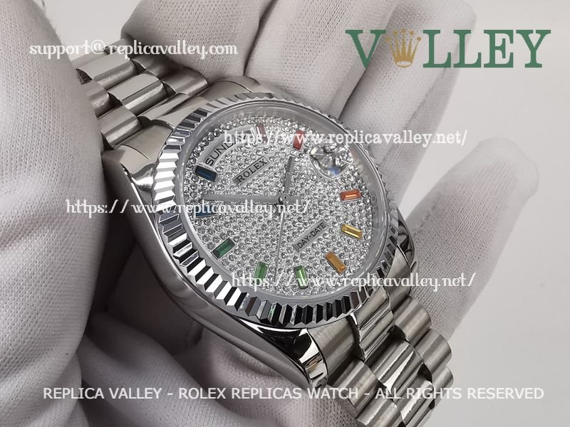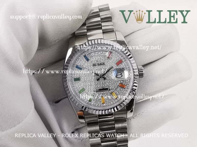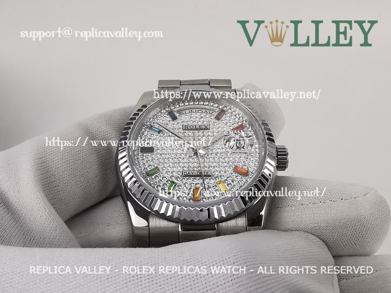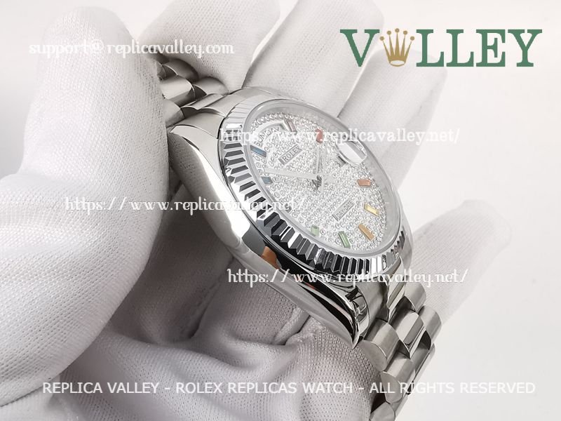 DD36009 Rolex Day-Date 128236 Fluted Bezel Diamond-Paved Dial
