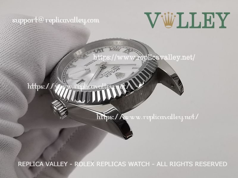 Model: SS Case, Fluted Bezel, White Dial with Roman markers, Engraved ROLEXROLEX on rehaut