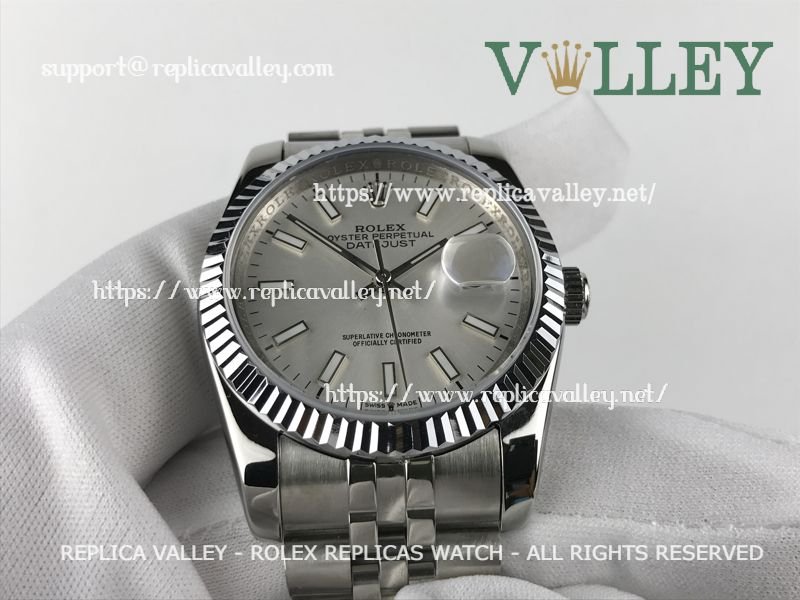 Model: SS Case, Fluted Bezel, Silver Dial, Luminous Hour/Dot Markers, Engraved ROLEXROLEX on rehaut