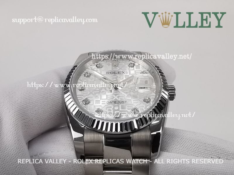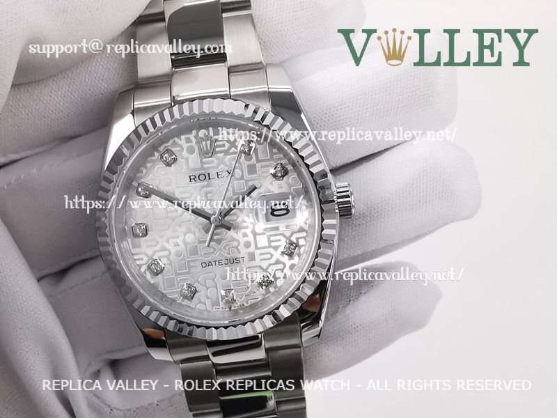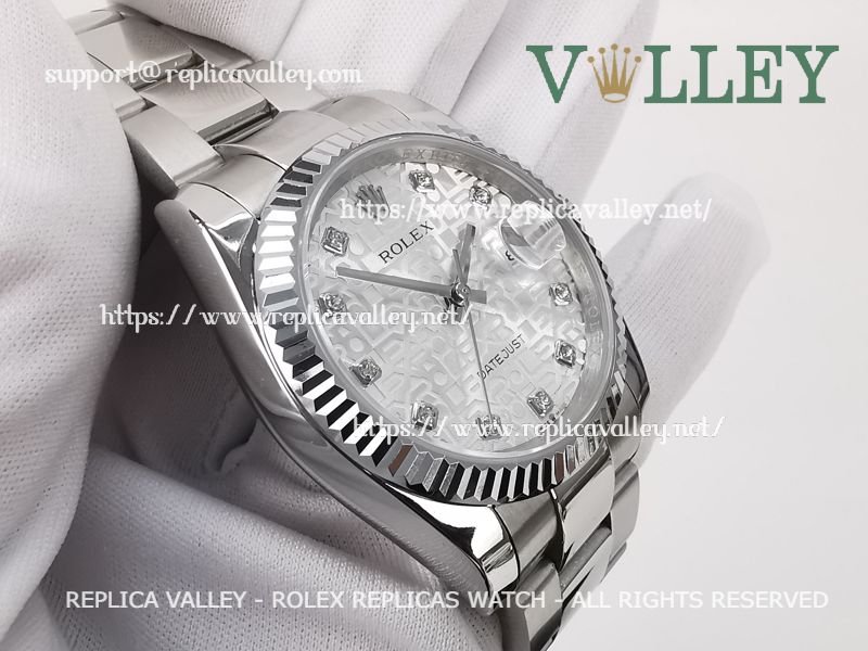 Model: SS Case, Fluted Bezel, Silver Jubilee Dial, Diamond Markers, Engraved ROLEXROLEX on rehaut