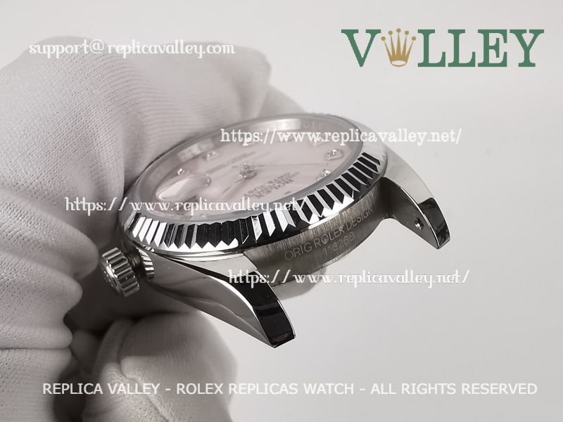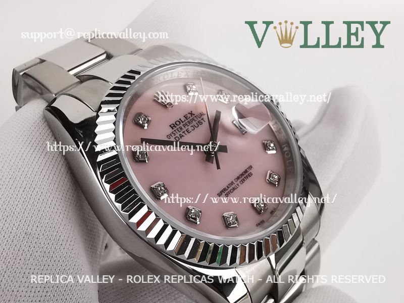 Model: SS Case, Fluted Bezel, MOP Pink Diap, Diamond Markers, Engraved ROLEXROLEX on rehaut