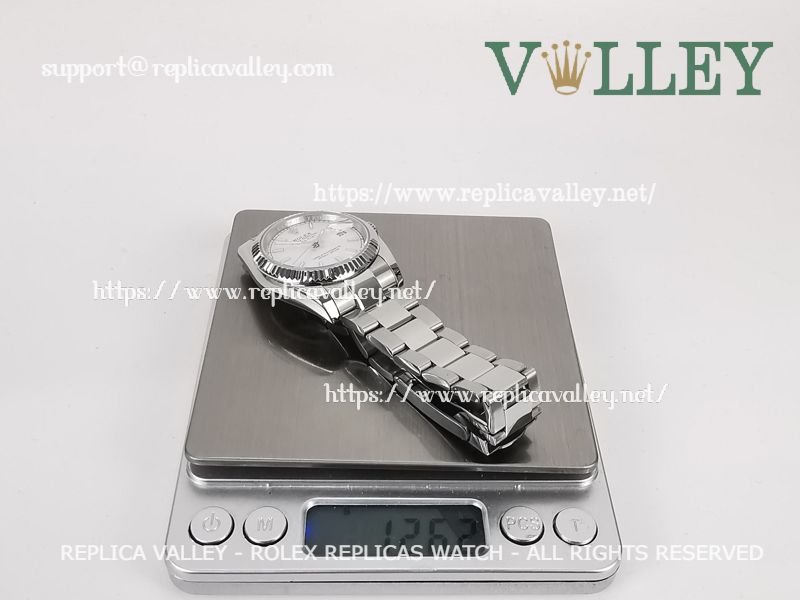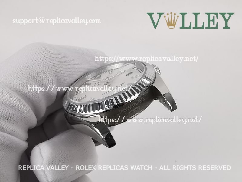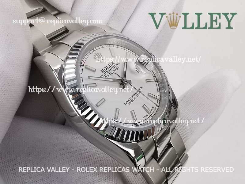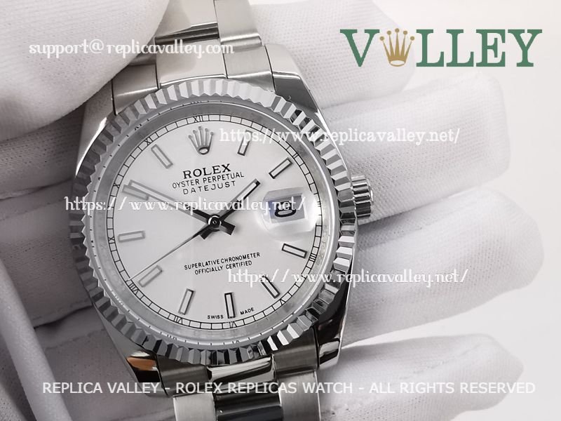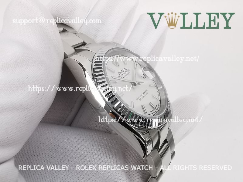 Model: SS Case, Fluted Bezel, Silver Dial, Stick Markers, Engraved ROLEXROLEX on rehaut