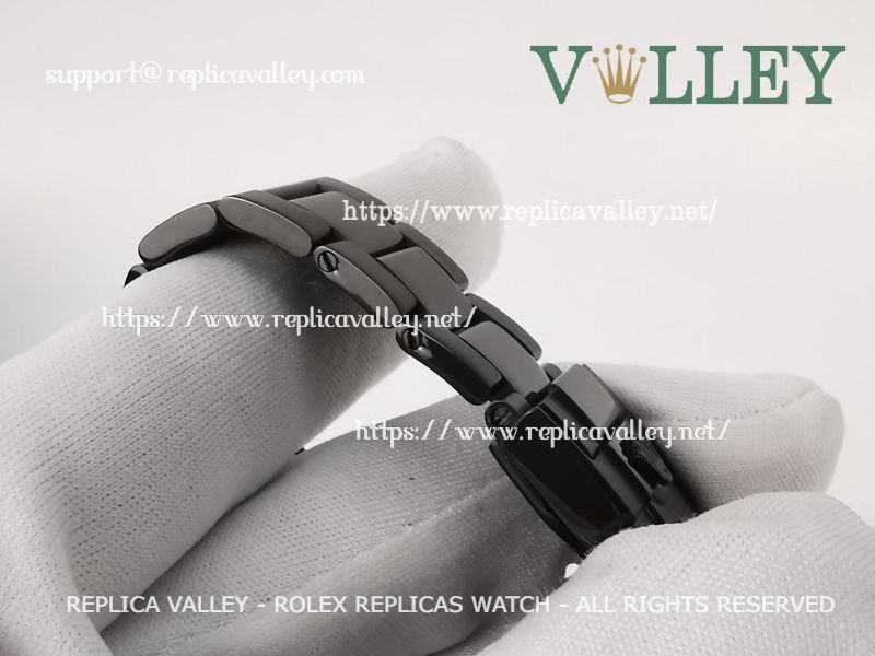 Model: Black PVD Coated SS Case, Fixed Bezel, Black Dial, Luminous Dot Markers, Engraved ROLEXROLEX on rehaut