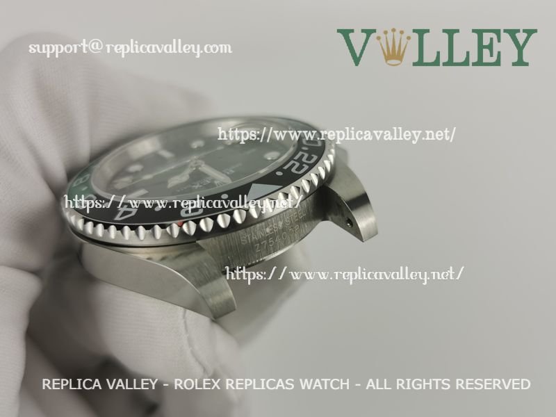 Model: 316L Stainless Steel in Polished Finish and Bezel, Black/Green Ceramic Insert (Bi Directional Rotating GMT Bezel), Luminous Dot Markers, Engraved ROLEXROLEX on rehaut