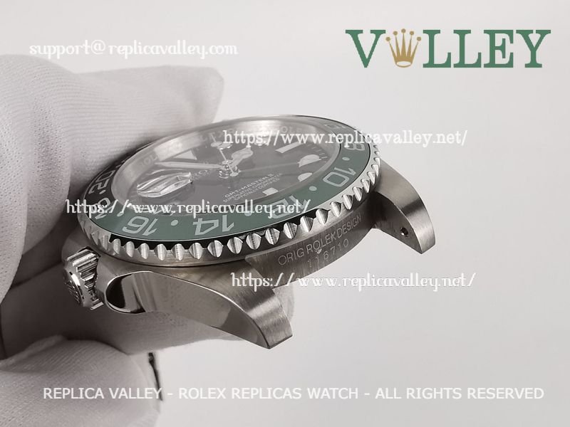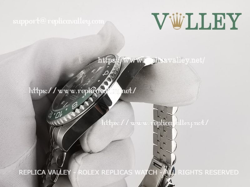 Model: 316L Stainless Steel in Polished Finish and Bezel, Black/Green Ceramic Insert (Bi Directional Rotating GMT Bezel), Luminous Dot Markers, Engraved ROLEXROLEX on rehaut