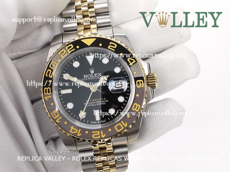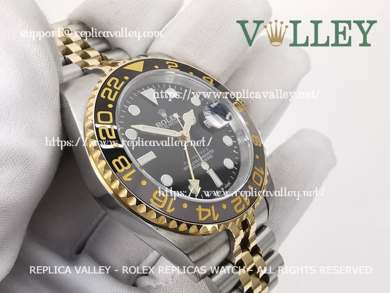 Model: 316L Stainless Steel in Polished Finish, Black/Grey Ceramic Insert (Bi Directional Rotating GMT Bezel), Luminous Dot Markers, Engraved ROLEXROLEX on rehaut