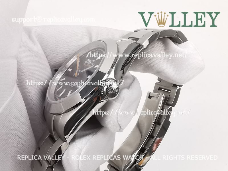 Model: SS Case, Smooth Bezel, Black Dial, Luminous Stick Markers, Engraved ROLEXROLEX on rehaut