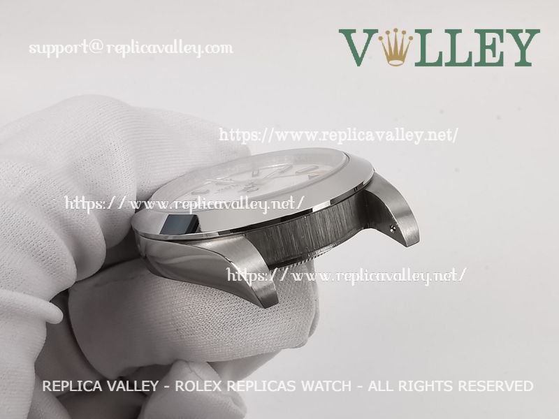 Model: SS Case, Smooth Bezel, White Dial, Luminous Stick Markers, Engraved ROLEXROLEX on rehaut